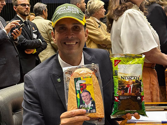 A ideia da distribuição dos bonés foi do líder do PL, Sóstenes Cavalcante (RJ). No sábado, dia de eleição dos presidentes das Casas, ministros de Lula e parlamentares governistas usavam bonés com a frase: “O Brasil é dos brasileiros”.