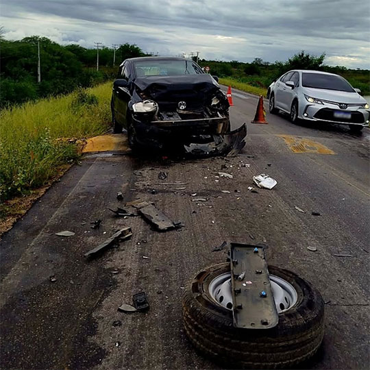 Carro e van conduzidos por moradores de Cansanção e Serrinha se envolvem em acidente na BA-120, em Santaluz