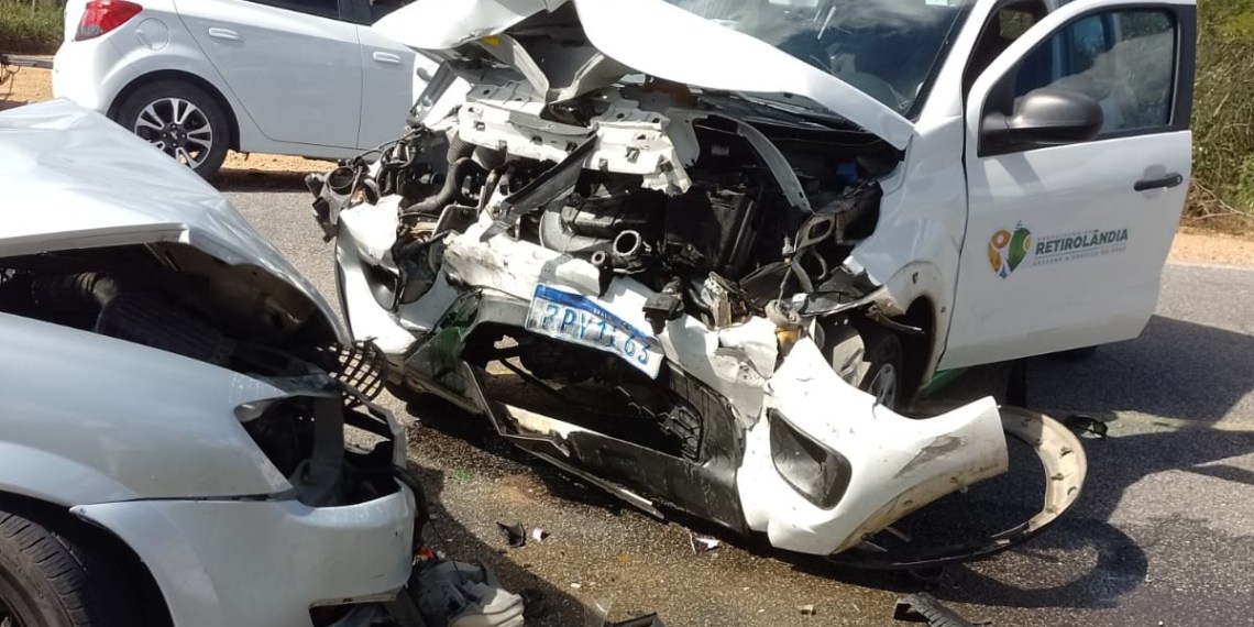 Colisão frontal na BA 409 envolve dois carros de passeio, um deles da Prefeitura de Retirolândia
