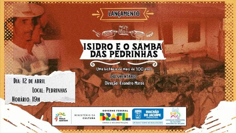 O documentário Isidro e o Samba das Pedrinhas, de autoria do jornalista Evandro Matos, será lançado no próximo dia 12 de abril na comunidade de Pedrinhas, berço de uma história que nos remete a mais de 100 anos.