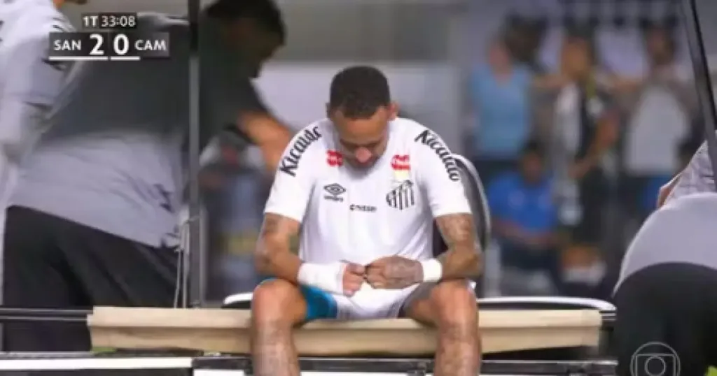 Logo após o primeiro gol do Peixe, marcado por Zé Ivaldo, Neymar sentiu o problema físico e foi flagrado pela transmissão chorando em campo. O atacante até pediu para permanecer em campo mais alguns minutos, mas foi substituído por Rollheiser logo depois.