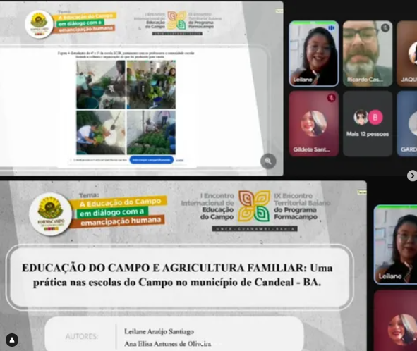 O relato de Experiência foi apresentado nesta sexta-feira 09 de maio de 2025, via on line, com o título: ” EDUCAÇÃO DO CAMPO E AGRICULTURA FAMILIAR: Uma prática nas escolas do Campo no município de Candeal – BA.’