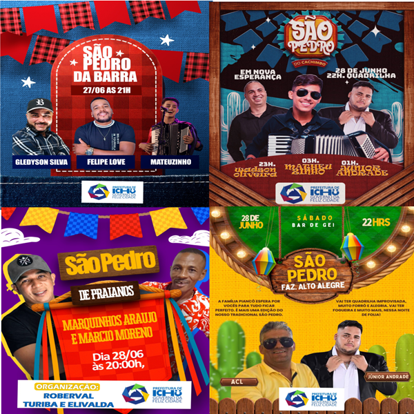 Passadas as comemorações do São João, os festejos juninos continuam em Ichu com as festas de São Pedro que serão realizados em vários locais neste final de semana, contando com o apoio da Prefeitura Municipal.