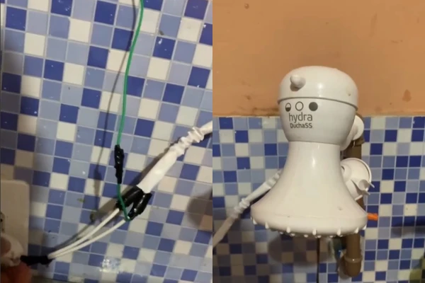 Baiano viraliza com chuveiro elétrico na pia da cozinha; especialistas alertam para riscos