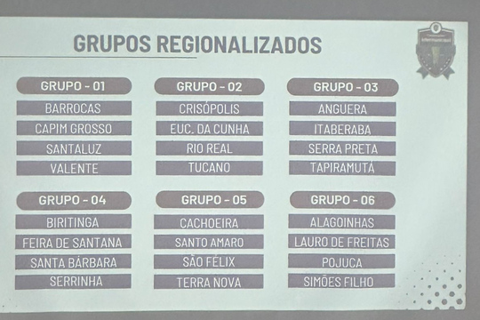 Santaluz conheceu neste sábado (26) os adversários da primeira fase do Campeonato Intermunicipal 2025. Em evento realizado pela Federação Bahiana de Futebol, em Salvador, a equipe luzense foi confirmada no Grupo 1, ao lado das seleções de Valente, Barrocas e Capim Grosso.