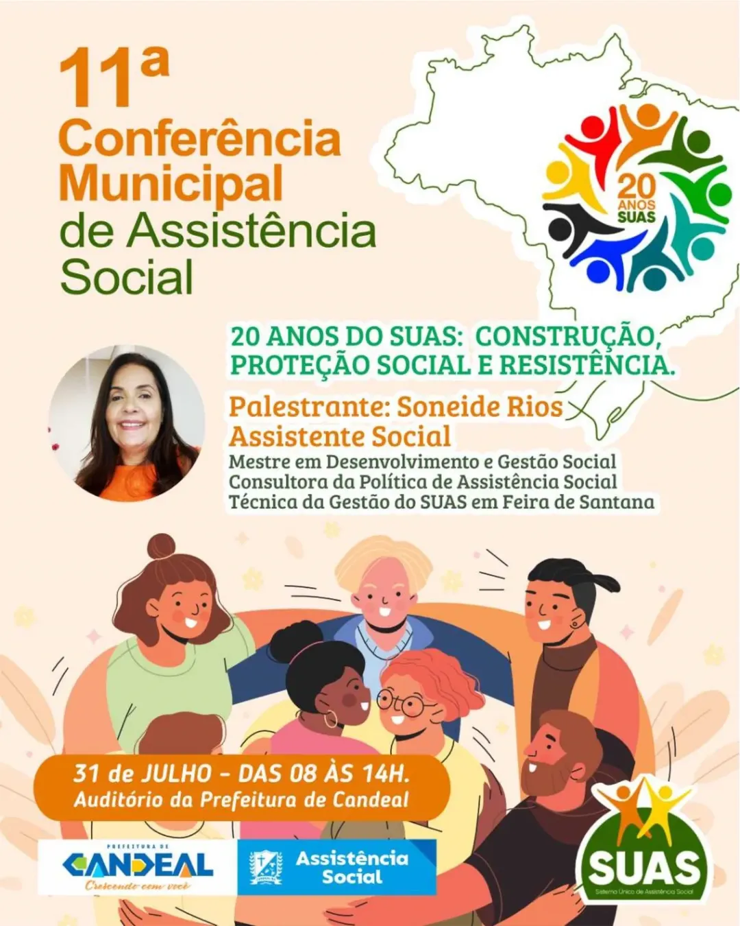 A Prefeitura Municipal de Candeal, por meio da Secretaria de Assistência Social, convida toda a população para participar da 11ª Conferência Municipal de Assistência Social, um importante espaço de diálogo, avaliação e construção de políticas públicas para o nosso município.