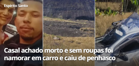 Quem era casal encontrado morto e sem roupas que foi namorar em carro e caiu de paredão de 400 metros no ES