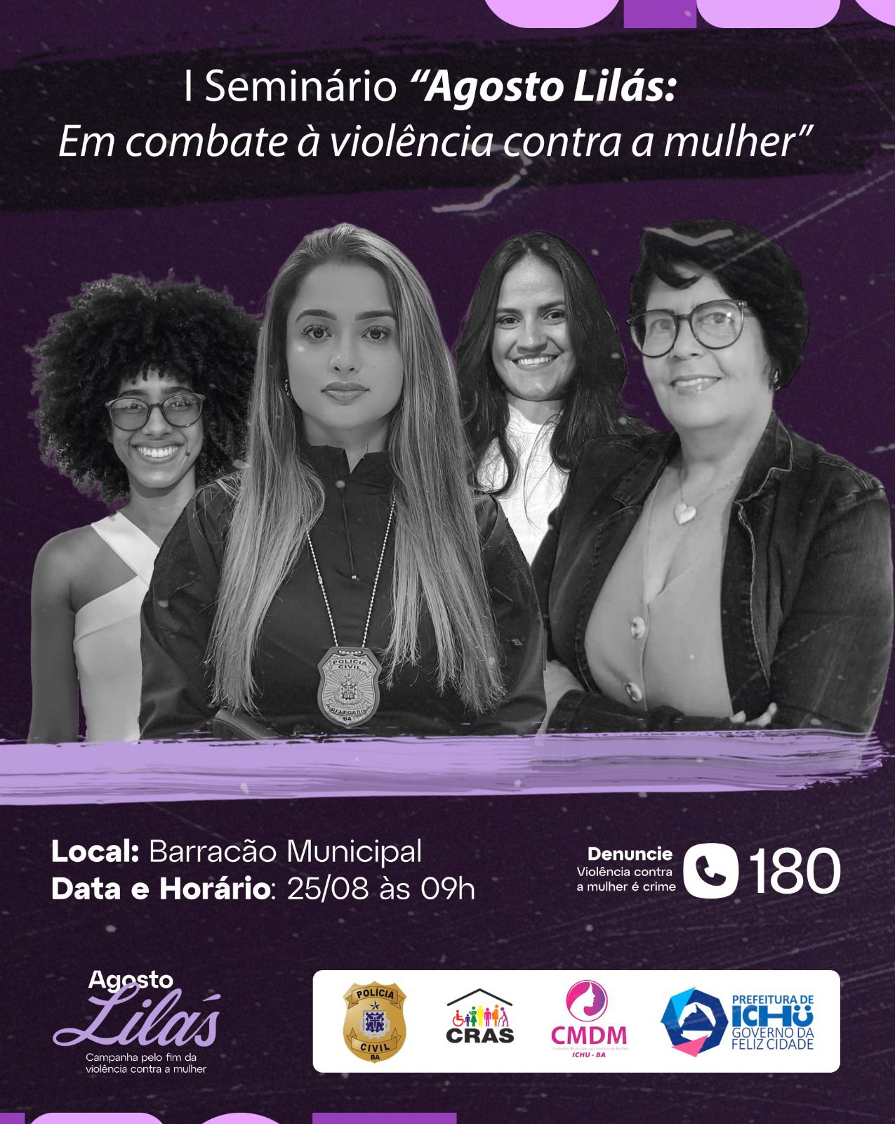 Nesta segunda-feira, 25 de agosto, às 9h, no Barracão Municipal, a Prefeitura de Ichu, através da Secretaria Municipal de Promoção Social e Cidadania, promove o I Seminário Agosto Lilás, uma importante ação de conscientização e enfrentamento à violência contra a mulher.