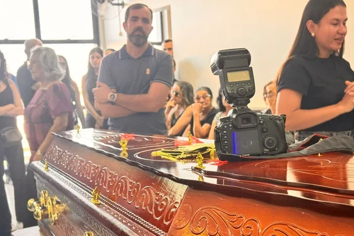 Fotógrafo Ariel Mota Mascarenhas é sepultado em Conceição do Coité. Câmara foi colocada sobre o caixão