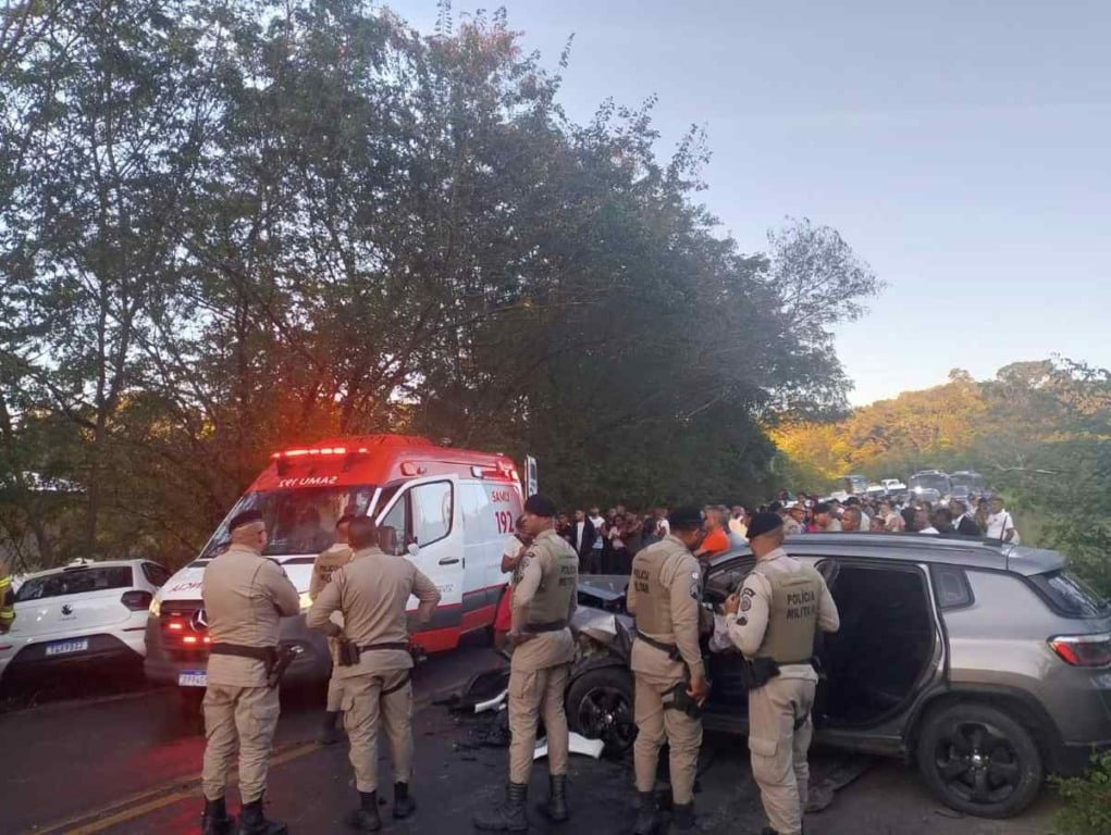 Um grave acidente registrado na madrugada desta segunda-feira (17) deixou quatro pessoas feridas e provocou congestionamento na BA-001, no município de Vera Cruz. A colisão frontal envolveu um Polo Track e um Jeep Compass.
