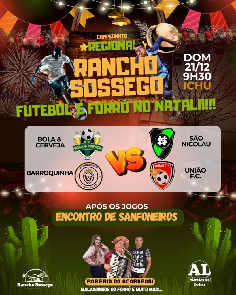 Com a proximidade do Natal, o Rancho Sossego preparou um verdadeiro presente para os amantes do esporte e da música nordestina. Neste domingo, 21 de dezembro, acontece mais uma rodada do Campeonato Regional do Rancho Sossego, a partir das 9h30.