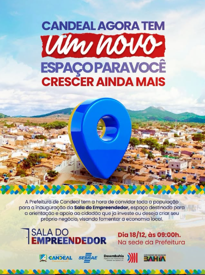 O município de Candeal dará mais um importante passo no fortalecimento da economia local com a inauguração da Sala do Empreendedor, um espaço especialmente pensado para apoiar, orientar e fortalecer quem já empreende ou sonha em abrir o próprio negócio.