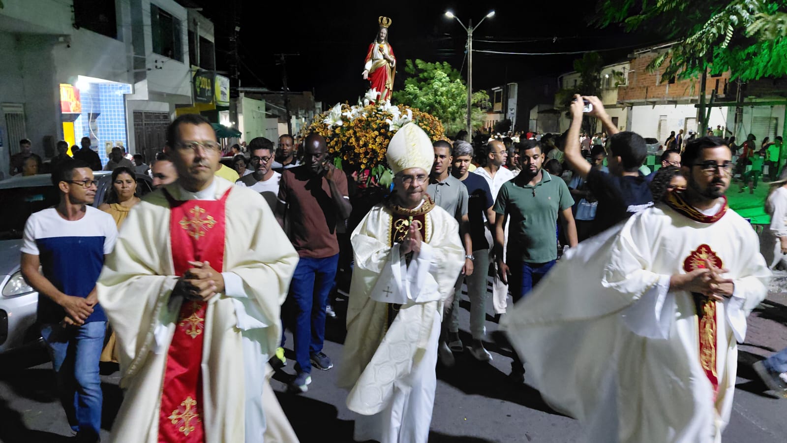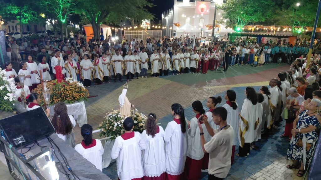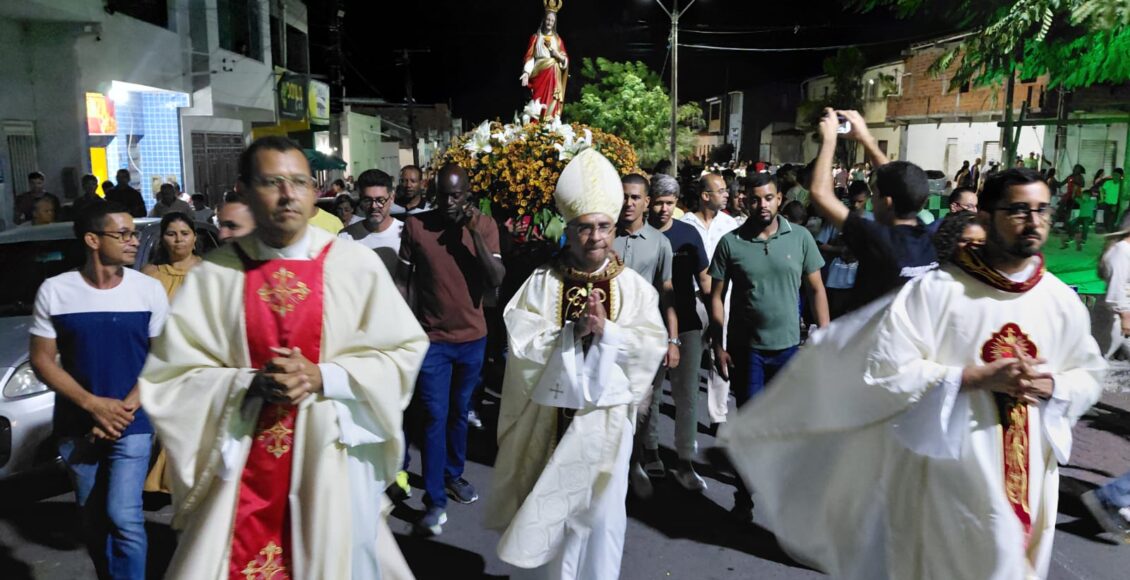 A procissão deste domingo aconteceu após a Missa, reuniu centenas de devotos que percorreram as principais ruas da cidade em clima de oração, cânticos e gratidão.