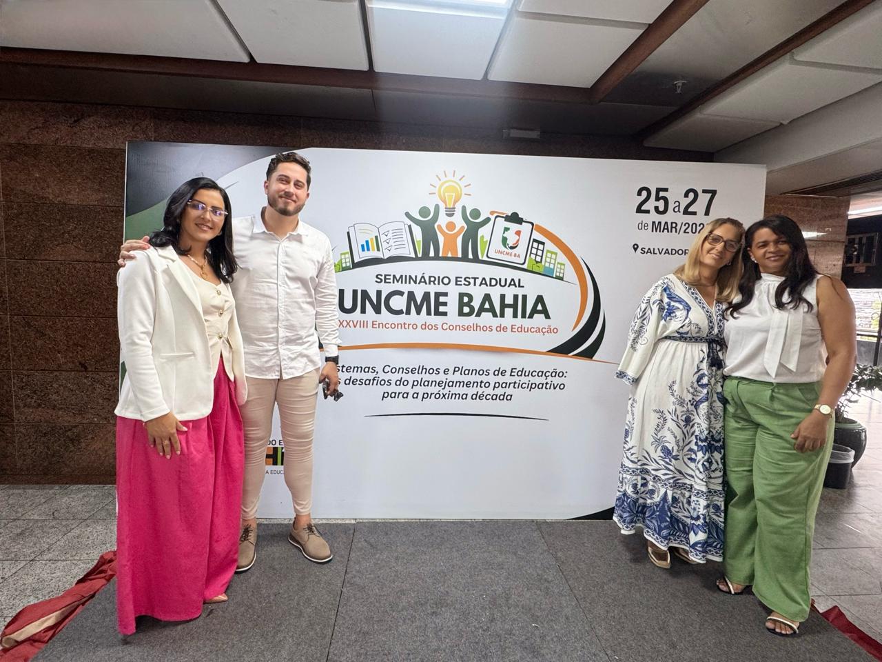 Representado pelo Secretário Municipal de Educação e Cultura, Leonam Castro, a Diretora de Educação, Jussara Carneiro, a Presidente do Conselho do FUNDEB, Márcia Cedraz e da Presidente do Conselho de Educação, Nilzete Barcelar, o município de Ichu está presente no XXVII Encontro Estadual da União Nacional dos Conselhos Municipais de Educação (UNCME) que vem acontecendo em Salvador.